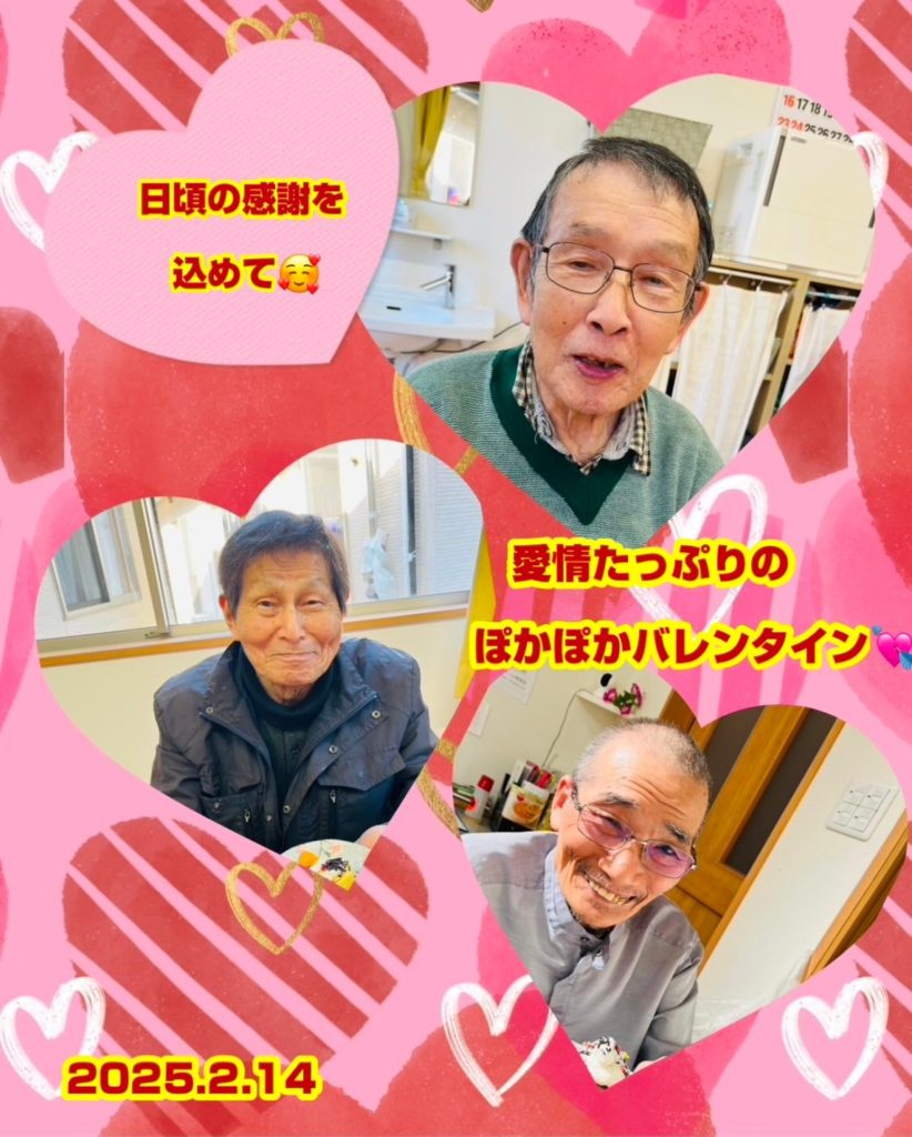 2025年2月18日 / 最終更新日時 : 2025年2月18日 pokapoka3939 日々ぽかぽか 2025年💝バレンタインデー 今年のバレンタインデーは♡ ロールケーキをデコレーションして頂きました♪ 「甘いものはいいね!美味しいな♡」と皆様喜ばれていました🤗☀️ そして職員さんには ぽかぽかからのチョコレートがあります♡ コメントを残す コメントをキャンセルメールアドレスが公開されることはありません。 ※ が付いている欄は必須項目ですコメント ※ 名前 ※ メール ※ サイト 次回のコメントで使用するためブラウザーに自分の名前、メールアドレス、サイトを保存する。